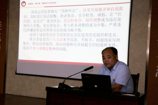 党委书记讲党课。6月11日,公司党委书记窦存增为毕业生党员讲专题党课。窦存增以《学条例、守党纪、知敬畏、做先锋、让遵规守纪成为生活习惯》为题,从党员的“底线”、“红线”、“高压线”引入,围绕《中国共产党纪律处分条例》展开解读,让大家深刻认识到违反党纪国法的严重后果。随后结合毕业生党员今后可能会面临的具体情况进行分析,警醒大家在日常工作和生活中要严格遵守党的纪律和规矩。窦存增激励毕业生党员时刻铭记自己的身份,牢记入党初心和使命,不断加强党性修养,工作中勇挑重担,处处发挥党员先锋模范作用。会后全体毕业生党员在党纪学习教育宣传条幅上签字,做出一份郑重承诺,将党纪牢记心间。