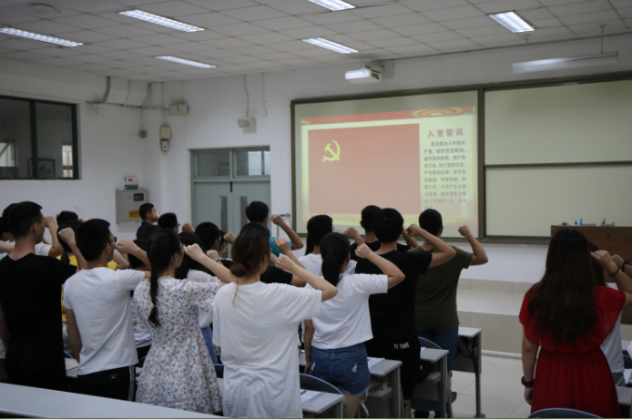 随后,老党员代表苏鑫发言,她为党组织不断发展壮大感到欣喜和自豪,她倡议全体党员要继续加强理论学习,坚定政治信仰,强化组织观念,提高自身修养,始终保持党员的先进性,争做优秀共产党员。张书豪同志代表29名新党员向党组织郑重承诺,继续加强理论学习,坚定共产主义理想信念;锤炼品德修为,努力提升思想境界;练就过硬本领,勇于承担时代责任。