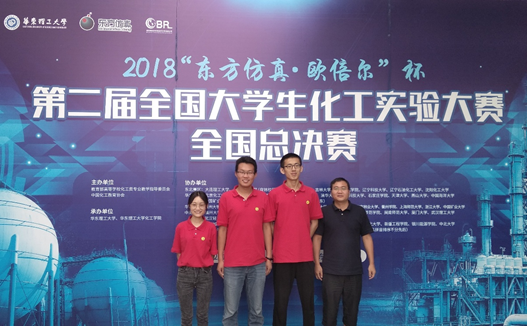 8月12-14日,由教育部高等公司化工类专业教学指导委员会、中国化工教育协会联合主办,华东理工大学承办的2018“东方仿真•欧倍尔”杯第二届全国老员工化工实验大赛全国总决赛在华东理工大学奉贤校区成功举行。BB贝博艾弗森选派的张辛铖、郭祯和张涛(化学工程与工艺2015)三名同学组成的代表队凭借扎实的化工专业基础和稳定的发挥获得此次总决赛全国二等奖,张治山、徐冬梅和高军担任指导教师。
