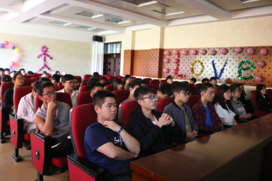 伴随着热烈的掌声,讲座正式开始。一首《我可能不会爱你》引出了本次讲座的主题:恋爱心理探析。随后,刘老师以实际数据和名人对爱情的理解为参考,在各个方面详细解析了恋爱心理以及爱情的由来,逐渐将爱情、恋爱剖析开来,渐渐被同学们理解。伴随着一阵阵欢声笑语,此次心理知识讲座圆满落下帷幕。