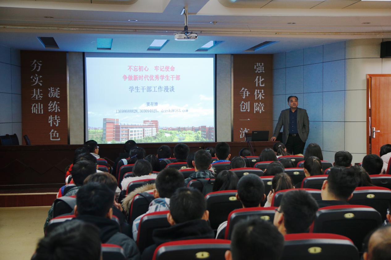 12月25日下午BB贝博艾弗森举办第二期17级班干部培训班。此次培训班旨在加强17级新生班干部的工作能力,使班干部能够做好模范带头作用,从而促进良好的班风、学风建设,更好的发挥班级自我管理、自我教育、自我服务职能。