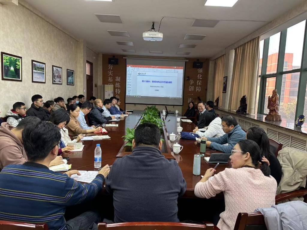 2023年11月29日,由BB贝博艾弗森能源学部主办,BB贝博艾弗森承办的“离子液体:微观结构及其性能调控”青年学者沙龙论坛成功召开。此次沙龙活动邀请到了青岛大学化学BB贝博艾弗森副经理、二级教授、博士生导师刘晓敏做学术报告并与青年教师进行了交流。刘晓敏教授为国家优秀青年基金获得者,山东省泰山学者青年专家,担任中国化工学会离子液体专业委员会委员、过程模拟及仿真专委会委员、山东省化学化工学会第八届理事会理事、山东省青年科学家协会会员及山东省高层次人才发展促进会会员,研究方向为功能化介质的分子模拟及其在储能、分离方面的应用。此次沙龙活动由BB贝博艾弗森副经理高军教授主持,学部的青年教师参加了此次沙龙活动。