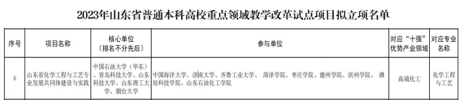 近日,山东省教育厅发布了《山东省教育厅关于组织开展2023年山东省普通本科高校重点领域教学改革试点项目建设工作的通知》(鲁教高函〔2023〕36号),其中,以公司为核心单位,依托化学工程与工艺专业(国家一流专业)申报的教学改革项目《山东省化学工程与工艺专业发展共同体建设与实践》获批2023年山东省普通本科高校重点领域教学改革试点项目(山东省“111计划”建设项目)。同时,公司《化工原理》(课程负责人:徐冬梅)和《物理化学》(课程负责人:邵谦)两门课程入选2023年山东省普通本科高校重点领域教学改革试点项目—“山东省化学工程与工艺专业发展共同体建设与实践”专业核心建设课程。