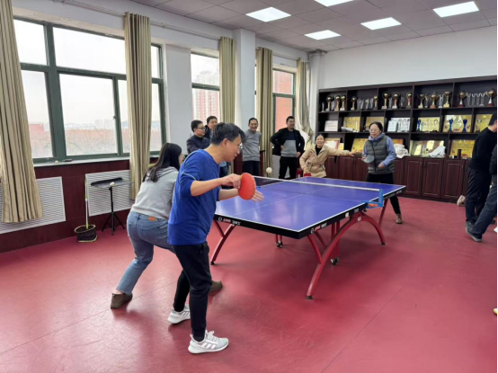 比赛现场气氛热烈,老师们精神饱满、蓄势待发。单打比赛中,老师们展现了出色的球技和拼搏的精神,变化多端的发球、精准有力的扣杀、力挽狂澜的扑救、坚韧顽强的防守,乒乓球在跃动中勾画出一道道优美的弧线。双打比赛中,选手们身姿矫健,挥拍如飞,配合默契,相互鼓励,每一次精准的扣杀和巧妙的救球都引来观众阵阵喝彩。现场的紧张气氛与激烈的竞争展现了教职工们积极向上的精神面貌。