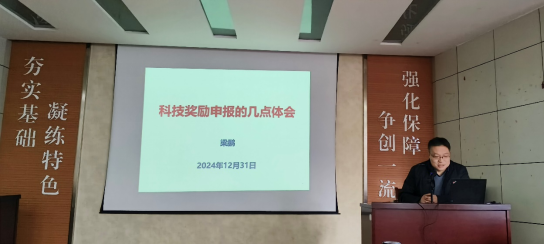 为了深入贯彻和落实习近平总书记关于科技创新的重要讲话精神,推动高水平团队建设,强化有组织科研,促进科研人员了解最新科技奖励政策,提升申报能力,2024年12月31日,BB贝博艾弗森在J2-104报告厅组织召开了科技奖励申报专题培训会。公司副经理梁鹏教授、唐群委教授分别作了关于科技奖励申报的专题报告,公司全体教师参加此次培训。会议由公司党委书记窦存增主持。