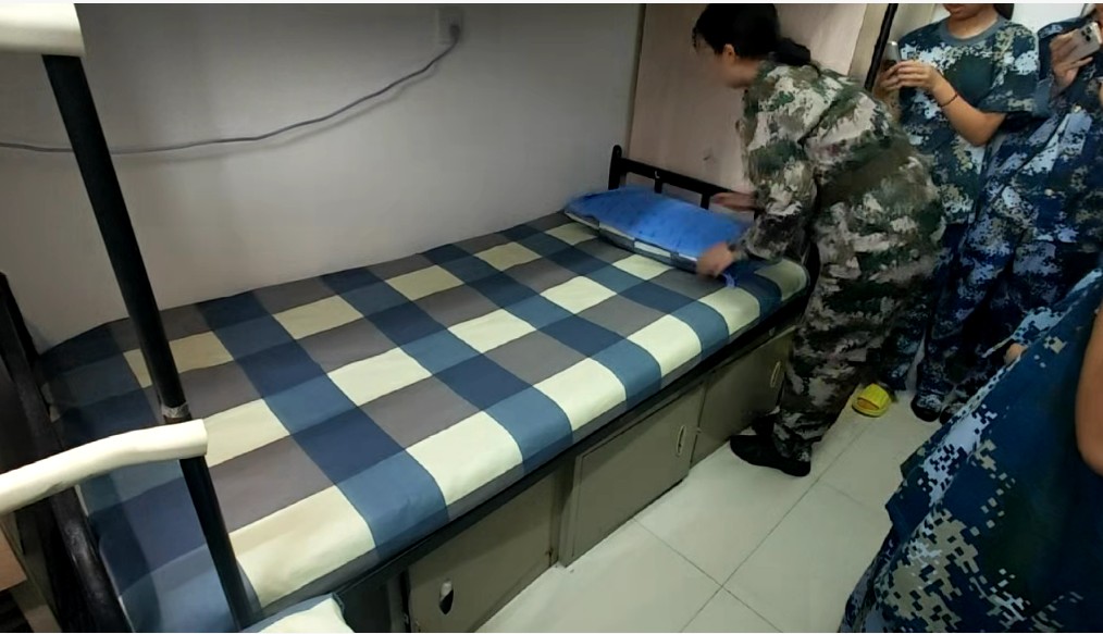 各连队教官与辅导员深入员工宿舍,现场示范教学,详细讲解内务整理标准。从被褥叠放、物品定置到卫生清洁,教官们一一示范,耐心指导。“豆腐块”式的被子、整齐划一的物品摆放、光亮洁净的地面,每一个细节都体现着军人般的严谨作风。新生以饱满的热情投入内务整理,认真观摩实践,互相学习交流。在教官和辅导员的指导下,同学们很快掌握了内务整理的要领,宿舍环境焕然一新。