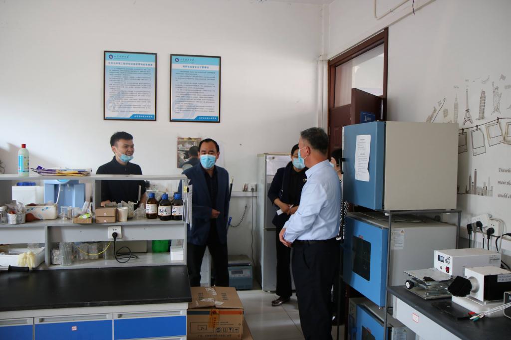 曾董事长一行来到公司科研实验室,对实验室卫生情况、日常消杀制度、值班安排、实验用品摆放等内容进行了检查,仔细询问了申请返校员工的情况,查看了研究生科研实验室的学习工作环境。吕经理向曾董事长详细介绍了疫情防控期间实验室管理办法和各项安全保障措施,公司根据公司本学期开学工作安排,精准摸排返校员工信息,坚持“一人一策”原则制定员工返校工作方案,并对返校员工所用实验室进行了专项消毒清扫,确保员工复学后拥有一个安全健康的实验室环境。