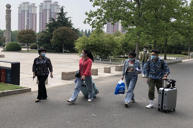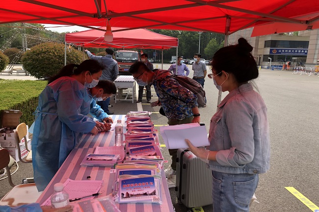 在经过消毒、健康码核验、体温检测、人脸识别等一系列检验环节后,化工学子们进入校园并领取防疫爱心礼包。在田书记、辅导员的引导下,返校员工前往宿舍办理入住手续。重新走在熟悉的校园里,看到道路两边葱郁的树木和盛开的花朵,学子们的兴奋之情溢于言表。