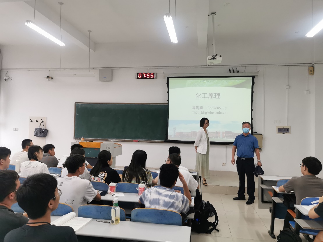 8月29日早上7:45,公司党委书记窦存增、经理吕宪俊、教学副经理李琳、各系主任及教科办工作人员来到J1和J14教学楼,走进《化工原理》、《微生物学》、《选矿厂设计》、《矿石可选性研究》等课程的课堂,了解新学期课程开课情况。