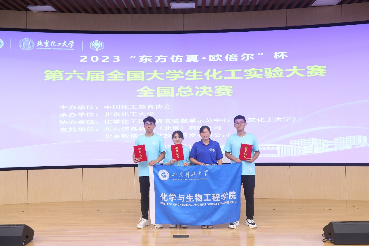 8月13日,2023“东方仿真•欧贝尔”杯第六届全国老员工化工实验大赛全国总决赛在北京化工大学落下帷幕,BB贝博艾弗森选派的腾卓队(化学工程与工艺2020级王晓莹、翟晓凯和杜振宇)喜获全国二等奖,BB贝博艾弗森教师李敏、徐冬梅、郭清彬担任参赛团队的指导教师。