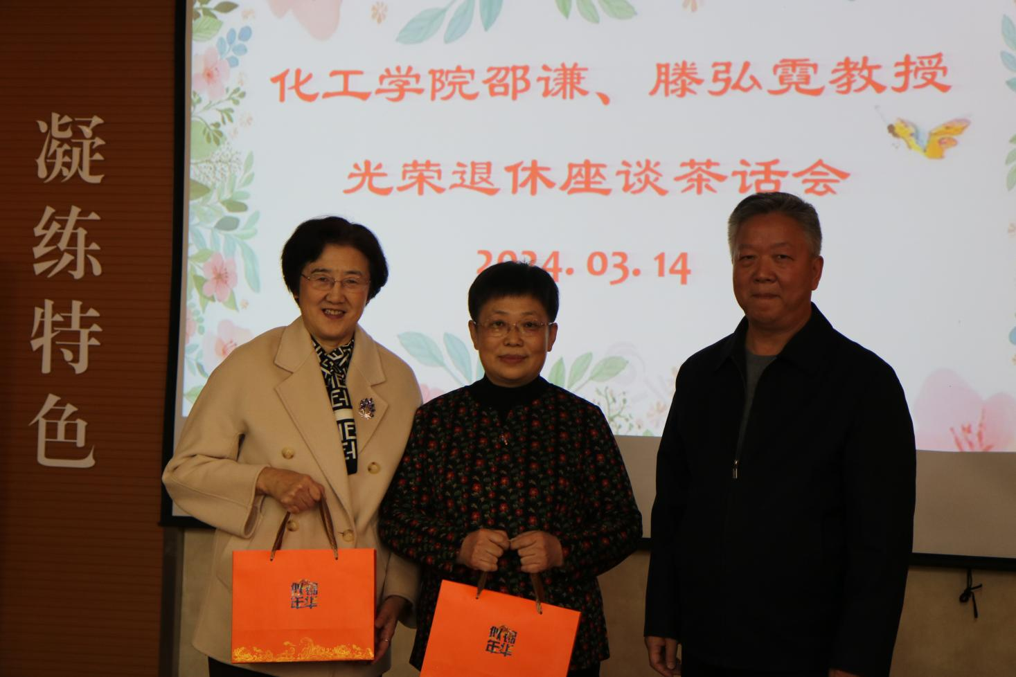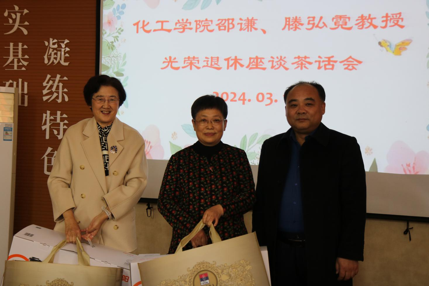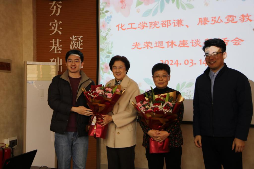 窦存增和吕宪俊分别向两位教授赠送了纪念品。青年教师代表向两位教授献上鲜花。