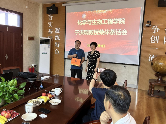吕宪俊、田静分别向于洪观赠送了纪念品。