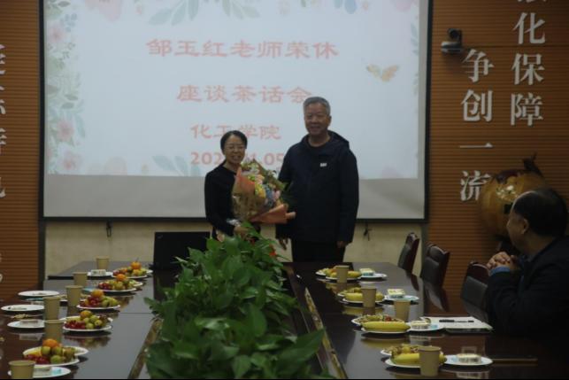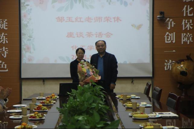窦存增和吕宪俊分别向邹老师赠送了纪念品,青年教师代表高中政向邹老师献上鲜花。