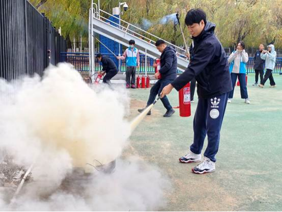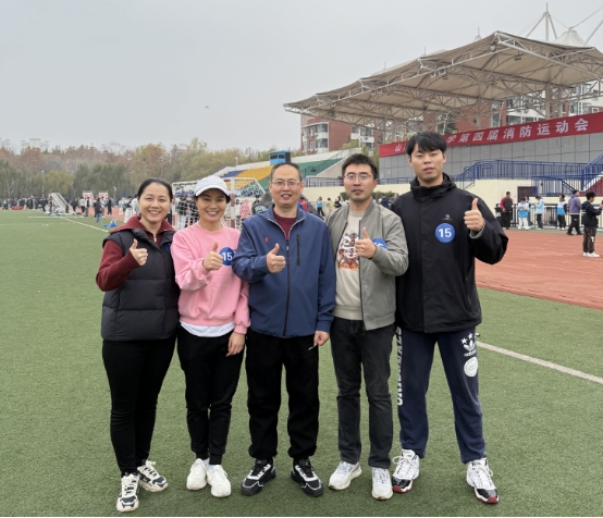 本次消防运动会设置了逃生竞速接力、灭火器选择折返跑、消防水带灭火、灭火器灭火4个比赛项目。公司代表队(由郭清彬、易凡、高中政、刘珊珊、孙梦柯组成)训练有素、团结协作、努力拼搏,在赛场上挥洒汗水,展示了化工教工消防的风采。