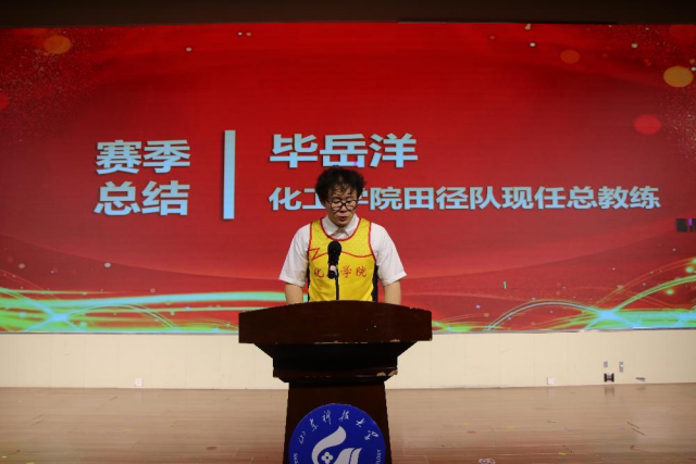 在田径队换届仪式上,田静为新任田径队教练刘政睿、兰庆雷、武俊妍、陆星宇颁发聘书。老教练毕岳洋和新教练刘政睿进行了小黄衫交接仪式。毕岳洋在赛季总结发言中深情回顾了田径队这一年的辛勤耕耘与丰硕成果,向始终支持队伍发展的师长同窗表达了诚挚谢意,并对新一届田径队再创佳绩寄予厚望。刘政睿在履新致辞中郑重承诺,将以满腔热忱履行教练职责,带领田径队开创新的辉煌,矢志传承化工田径的拼搏精神,让小黄衫的荣光在赛场上熠熠生辉,让“化工化工,谁与争锋”的激昂口号响彻云霄。