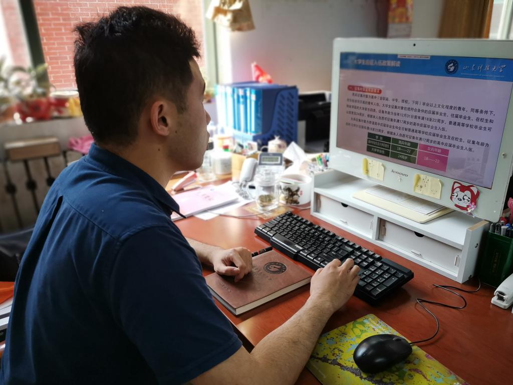 徐老师详细解读了2020年老员工参军入伍政策,生动细致地讲解了参军入伍条件、参军入伍流程、参军入伍优惠政策、直招士官相关政策等知识。他表示,老员工依法服兵役是国家赋予的神圣职责,同学们应该不断强化家国意识,踊跃报名参军。