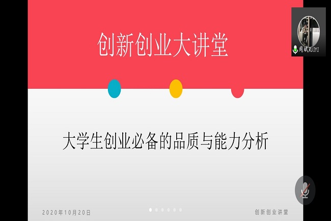 为激发广大同学创新创业的热情,增强专业学习的信心,提高创新创业能力,10月20日下午,BB贝博艾弗森通过腾讯会议举办创新创业大讲堂线上讲座。