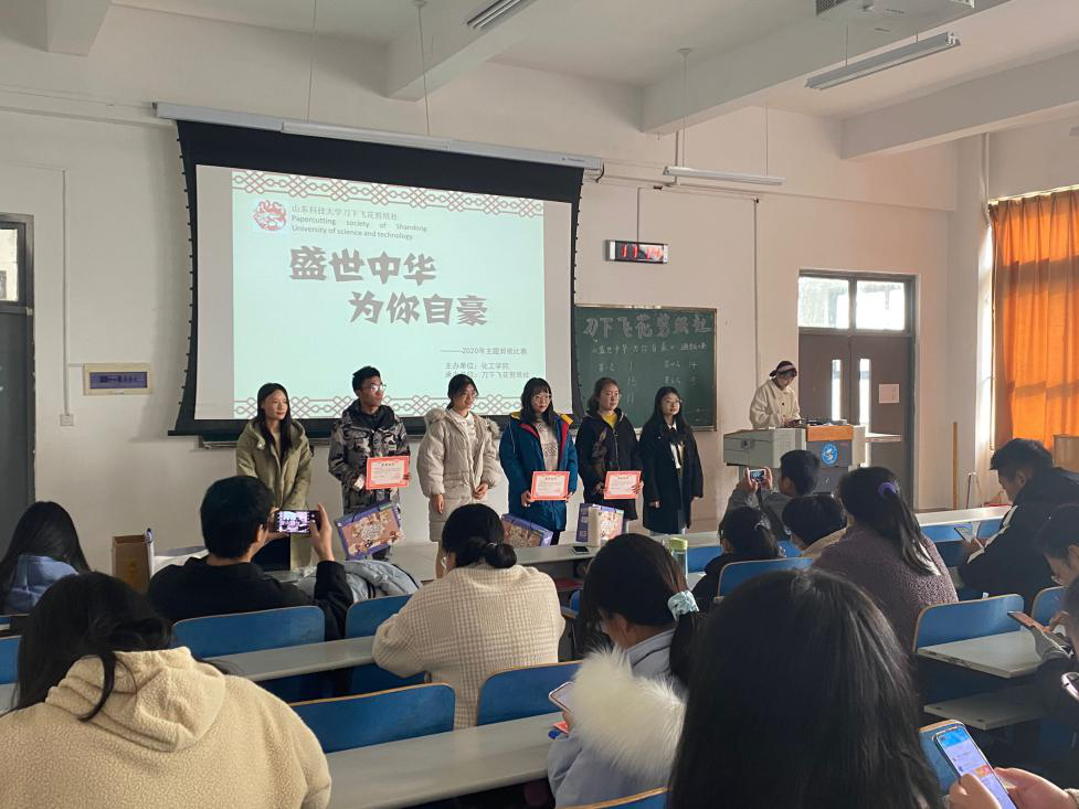 “我的家就在湖北,此次疫情我比大家更能感受到周围的变化,爆发初期大家人心惶惶,但之后国家做出的有力举措和医护人员的奋力守护,让我们感受到了心安,感谢我们伟大的祖国,感谢为国付出的医护人员。”参赛选手何艾薪如是说。14号选手张广洁展示了两份作品,“我想借此机会表达对国家和医护工作者的赞美,我认为没有他们,就没有我们现在和平安全的环境。”随后,现场观众对参赛者的作品进行了投票,同时,前任剪纸社社长对选手的作品记忆手法进行了点评。经过激烈的角逐,此次活动选出了一二三等奖各一名,两名优秀奖,受邀嘉宾为选手颁奖并发放了礼品,活动圆满结束。