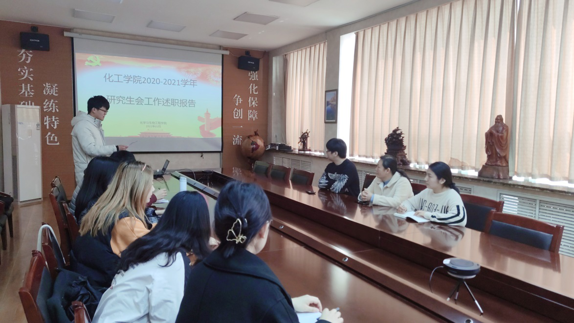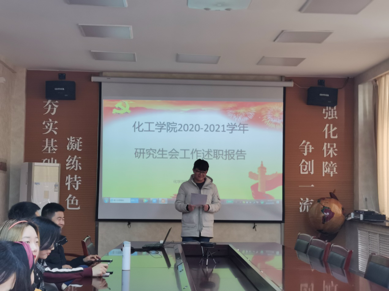 此次报告会由秦康主持,秦康简单而极富激情的开场白拉开了本次会议的序幕,他从提高自身政治素养、加强员工组织建设、重视员工工作点滴小事三方面进行述职。随后,研究生会主席及各部门部长针对半年来的工作情况进行发言,总结工作得失,结合各部门特点,向在场成员传授了宝贵的工作经验。团委书记易凡老师表达了对各位成员工作的肯定,并进行了互动交流,期待大家在新学年有更加优异的表现。会议最后,秦康作为代表,总结和点评了各部门半年的工作,述职报告会在掌声中圆满结束。