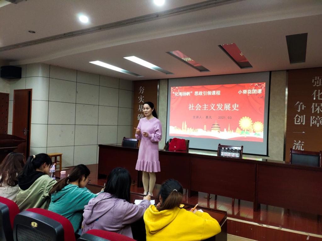 3月23日晚,BB贝博艾弗森“小葵花”系列团课第二讲开讲。本次课程仍由团委书记易凡担任主讲,各班级团支部书记参加了培训。此次团课的主要内容是社会主义发展史。首先,易凡老师用半个小时的时间,详细介绍了社会主义产生的根源以及发展的各个阶段。随后,沿着社会主义发展脉络,她带领各团支部书记回顾了中国特色社会主义理论发展的历史轨迹,并强调了广大团支部书记更应该在新时代的背景下,深入了解中国特色社会主义的发展历史和深刻内涵,做好社会主义史的理论传播者,在广大团员中间发挥思想引领的模范带头作用,以成长为中国特色社会主义事业合格的建设者和可靠的接班人。