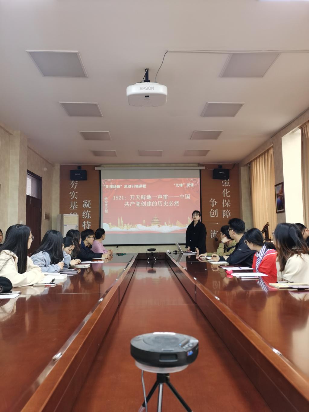 4月21日下午,BB贝博艾弗森研究生党支部“先锋”党课进行第三讲。王振冬同志担任主讲,党课的主题为“开天辟地一声雷——中国共产党创建的历史”。支部全体党员到场聆听。课堂上,王振冬从近代中国一系列革命的失败讲起,谈到受俄国十月革命和马克思主义传播的的启发,再到五四运动激励,促使以中国工人阶级和知识分子为代表的近代中国人民全面觉醒,寻求救亡图存的艰难历史,全面讲述了中国共产党成立的历史必然性。她说,中国共产党的成立,是开天辟地的大事变,中国革命的面貌、中华民族的面貌、中国社会的面貌,由此焕然一新。课程结束后,党支部书记易凡老师与各位同志交流学习心得。她强调,作为一名共产党员,我们要进一步传承和弘扬“红船精神”,坚定共产主义信仰,以永无止境的追求、善谋新篇的担当,继续干在实处、走在前列,为中国人民谋福利做贡献。