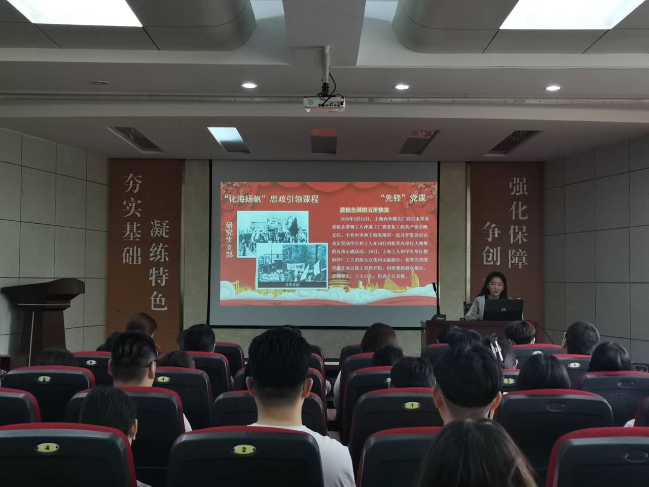 5月25日下午,BB贝博艾弗森研究生党支部“先锋”党课进行第七讲。王娜同志担任主讲,这次党课的主题为“1925革命浪潮滚滚来——中国共产党引领大革命高潮的到来”。支部全体党员到场聆听。王娜讲道,1925年1月,中国共产党在上海举行第四次全国代表大会,对党在当时要解决的一些基本问题作了阐述和回答,而最具历史意义的是明确提出了无产阶级在民主革命中的领导权问题。随后,五卅惨案激起了全上海乃至全中国人民的极大愤慨,在中国共产党的领导和推动下,五卅运动的狂飙迅速席卷全国,各阶层广大群众积极参加反帝爱国运动,打开反对帝国主义和封建军阀的革命新局面。她说,中国共产党领导的五卅运动,是中华民族直接反抗帝国主义的伟大运动,它大大促进了群众的觉醒,显示了各革命阶级、各阶层民众在无产阶级领导下联合斗争的巨大威力,给帝国主义和军阀势力一次前所未有的打击,并初步积累了领导反帝斗争的经验。课后,党支部书记易凡老师强调,作为一名共产党员,要以正确党史观为引领,用党的奋斗历程和伟大成就鼓舞斗志、明确方向,用党的光荣传统和优良作风坚定信念、指导行动,以更加昂扬的姿态为社会主义现代化国家建设贡献力量。