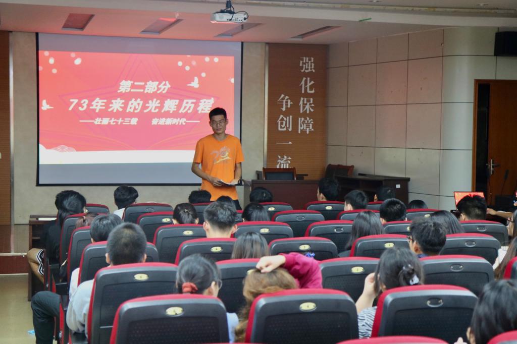 9月30日晚,​BB贝博艾弗森田径队在J2报告厅开展团日活动,活动的主题是“欢度国庆节,喜迎二十大”。活动由田径队团支部书记、总教练赵良朔主持,全体队员参加。首先,赵良朔带领大家重温了中国革命史,向大家讲述了国庆节的由来,强调了伟大祖国走到今天的不易,引发队员们的强烈共鸣。随后,团支部副书记耿继栋把党史上重要会议做了简要串讲,重点学习了党的十八大以来的重要会议精神。听完讲述,同学们开展了热烈的讨论,大家纷纷表示,为了新中国的建立,无数革命先烈抛头颅洒热血,为了新中国的强大,一代代青年前赴后继艰苦奋斗,在祖国73年华诞之际,党的二十大也将召开,作为新时代青年,我们有决心有责任有能力有毅力接过前辈们手中的五星红旗,为实现中华民族的伟大复兴贡献力量。讨论结束后,团支书、总教练赵良朔号召队员们要继续注重体育锻炼,强身健体,要不断努力学习各类知识,增长才干,为将来报效祖国走好脚下的路,以实际行动迎接党的二十大召开。