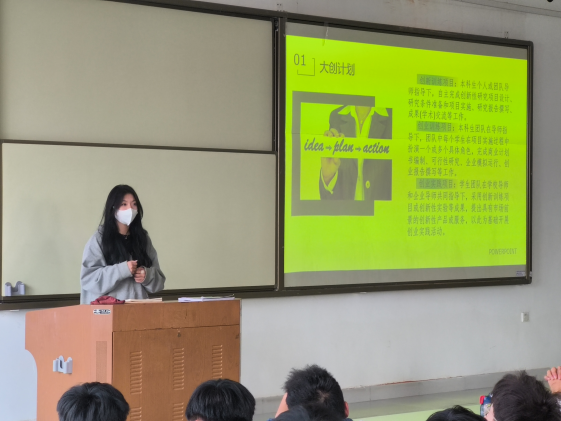 王奕苏首先介绍了什么是大创计划与育苗计划,结合自己去年的经历,系统讲解了立项准备、立项答辩、立项后项目进展等内容,她指出育苗计划的核心是创新和训练,要根据“国创计划”重点支持领域项目指南进行适当选择,要多听多想多做来丰富阅历,积极联系指导老师,老师具有丰富的科研经验,在比赛中发挥着中流砥柱作用。王淑从获奖情况和科研方面入手,介绍了常用的获取竞赛信息的途径,推荐了几个可以提高自身知识储备的网站和书籍,鼓励大家根据自身优势选择合适的赛事和赛道。张建飞从科创缘由、科研竞赛、社会服务三个大方面进行阐述,他提到大一时一定要做好规划,了解各类学科竞赛、科创比赛的报名时间与比赛时间,强调了执行力与毅力的重要性,放平心态,敢于面对困境,敢于接受失败,不懈奔跑就能收获成功。聂春晨分享了自己在科大本硕博一路走来的经历与感悟,如今博一的她依然十分感激自己本科参加科创比赛的经历,她勉励同学们要坚持学习,做好知识储备,充分利用大学的平台和资源,在自己擅长的领域里挑战自己,磨练自己,终会迎来更好的自己。