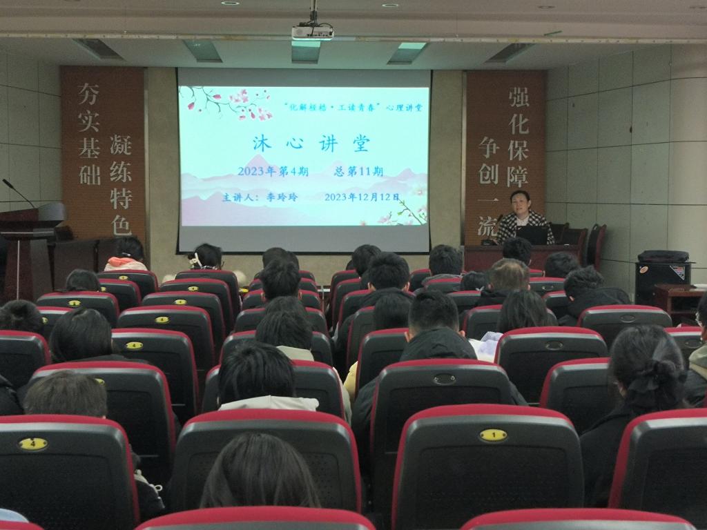 为了更好地普及心理健康知识,提升老员工的心理健康素养,提升心理干部的朋辈帮扶技能,BB贝博艾弗森于12月12日下午在公司104报告厅举办2023年第4期(总第11期)“化解桎梏·工读青春”—沐心心理讲堂。此次讲座由公司心理健康教育负责老师李玲玲主讲,公司心健联全体成员以及宿舍心理观察员到场聆听。