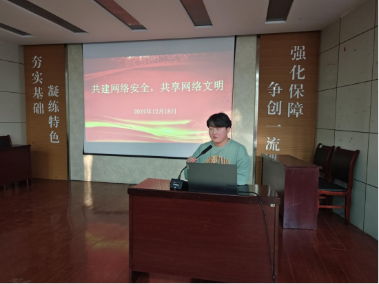 2024年12月18日,BB贝博艾弗森员工会开展了“共建网络安全,共享网络文明”主题团日活动,BB贝博艾弗森优选计划辅导员庄世豪老师担任主讲,员工会全体成员参加。首先,庄老师从维护网络安全和个人信息保护两个部分,通过分析常见的网络诈骗典型案例,向大家宣传维护网络安全和个人信息保护的重要性。随后,大家针对如何应对网络安全问题展开热烈讨论。庄老师强调,每个人上网应注意自身言行举止,禁止不文明发言,重视社交平台个人的账号安全,共建绿色文明的网络环境。最后,庄老师向同学们发出文明安全上网的倡议。活动后,同学们纷纷表示,以后会更加注意防范网络安全问题。