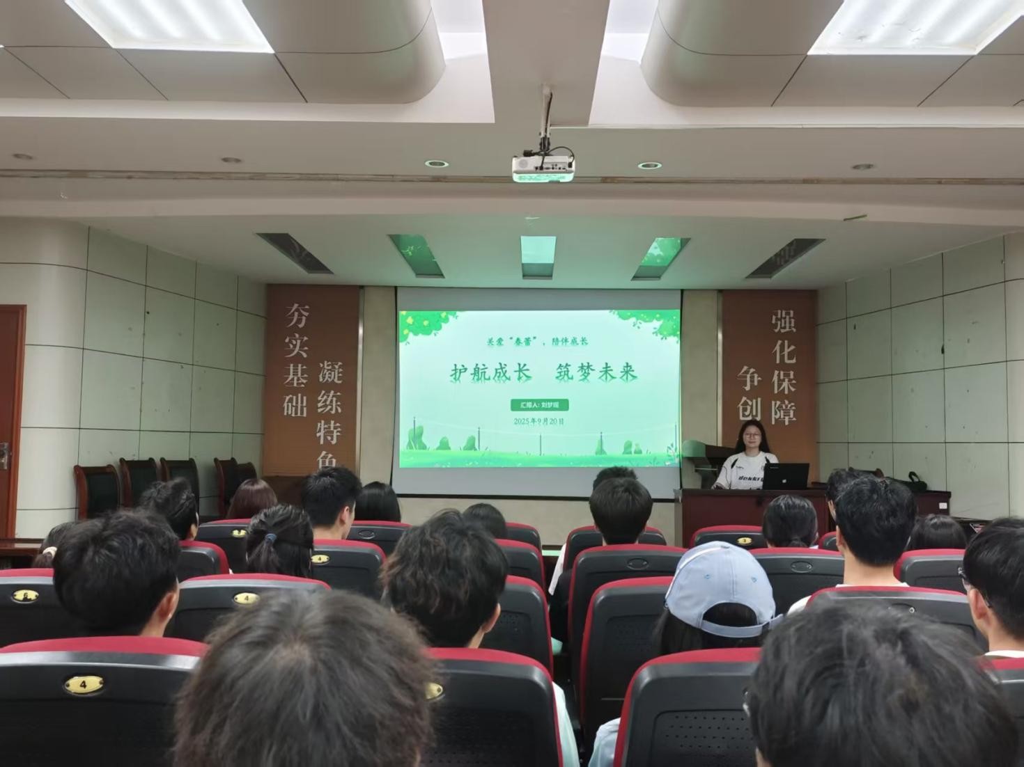 2025年9月20日,BB贝博艾弗森“关爱‘春蕾’,陪伴成长”主题团课在J2-104开班,作为该系列主题团课的第一讲,此次课程的主题是“护航成长,筑梦未来”,由“护蕾”志愿者刘梦瑶主讲,全体员工会成员参加。