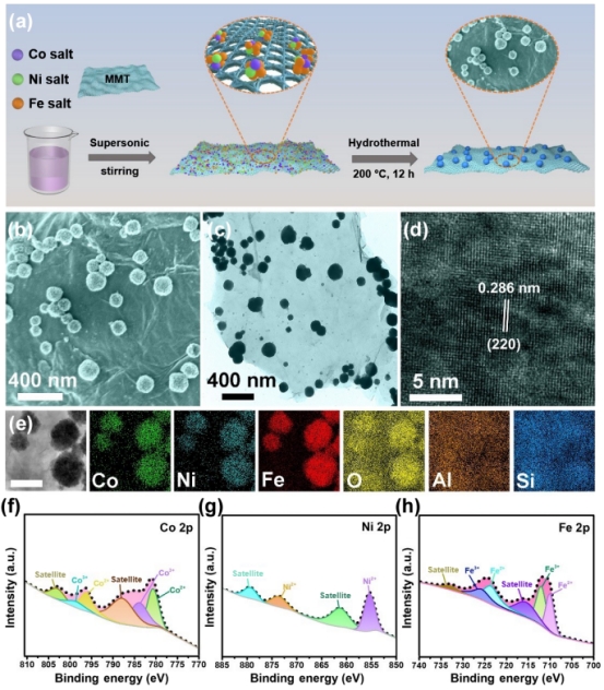 背景介绍:取之自然,用之自然,是社会可持续发展的一条有效途径。蒙脱石是一类由硅氧四面体和铝氧八面体构成的层状硅酸盐矿物材料,由于其良好的生物相容性、层间阳离子可交换性、吸附性在许多领域有着广泛的应用,其良好的二维片层状结构也可作为优良的催化剂载体,且其层间域可以作为良好的催化场所。纳米酶是一类既有纳米材料的独特性能,又有催化功能的模拟酶。相比天然酶,纳米酶具有催化效率高、稳定、经济和规模化制备的特点,它在医学、化工、食品、农业和环境等领域得到广泛应用。