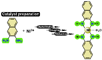 工作的关键是将转胺酶催化选的共生副产物-酮在酶催化体系条件下高效的转变回外消旋胺基供体,因此设计和合成了系列金属-配体催化剂(Mn-L, Cu-L, Sn-L和Ni-L),筛选得到最佳催化剂(Ni-NPs)及底物浓度,对催化剂进行多手段表征,确定了催化剂结构如图2。