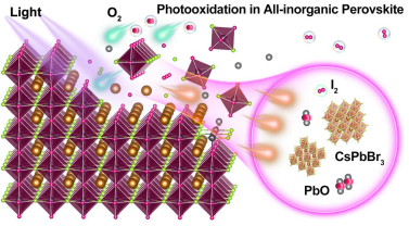①揭示氧自由基诱导无机钙钛矿分解的内部机制
