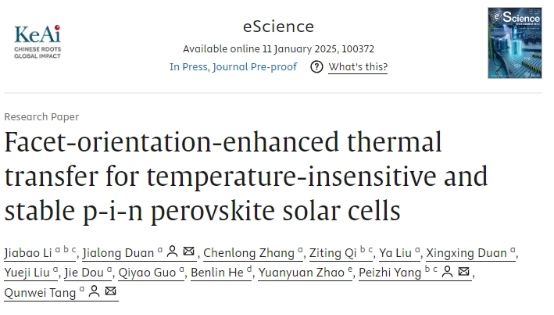 段加龙&唐群委在eScience杂志发表钙钛矿太阳能电池最新成果
