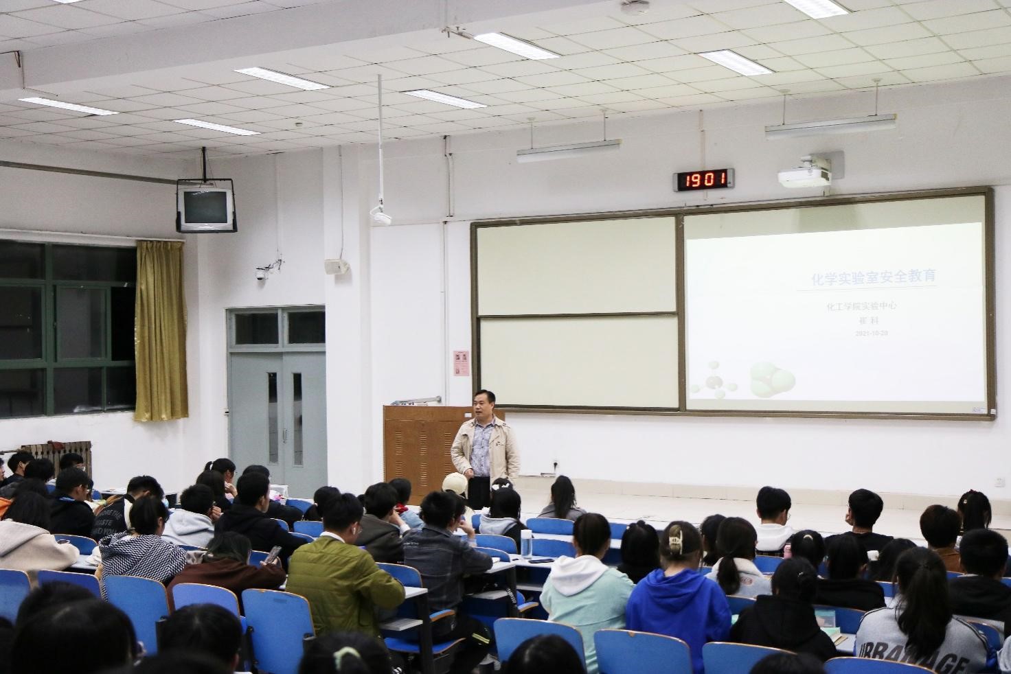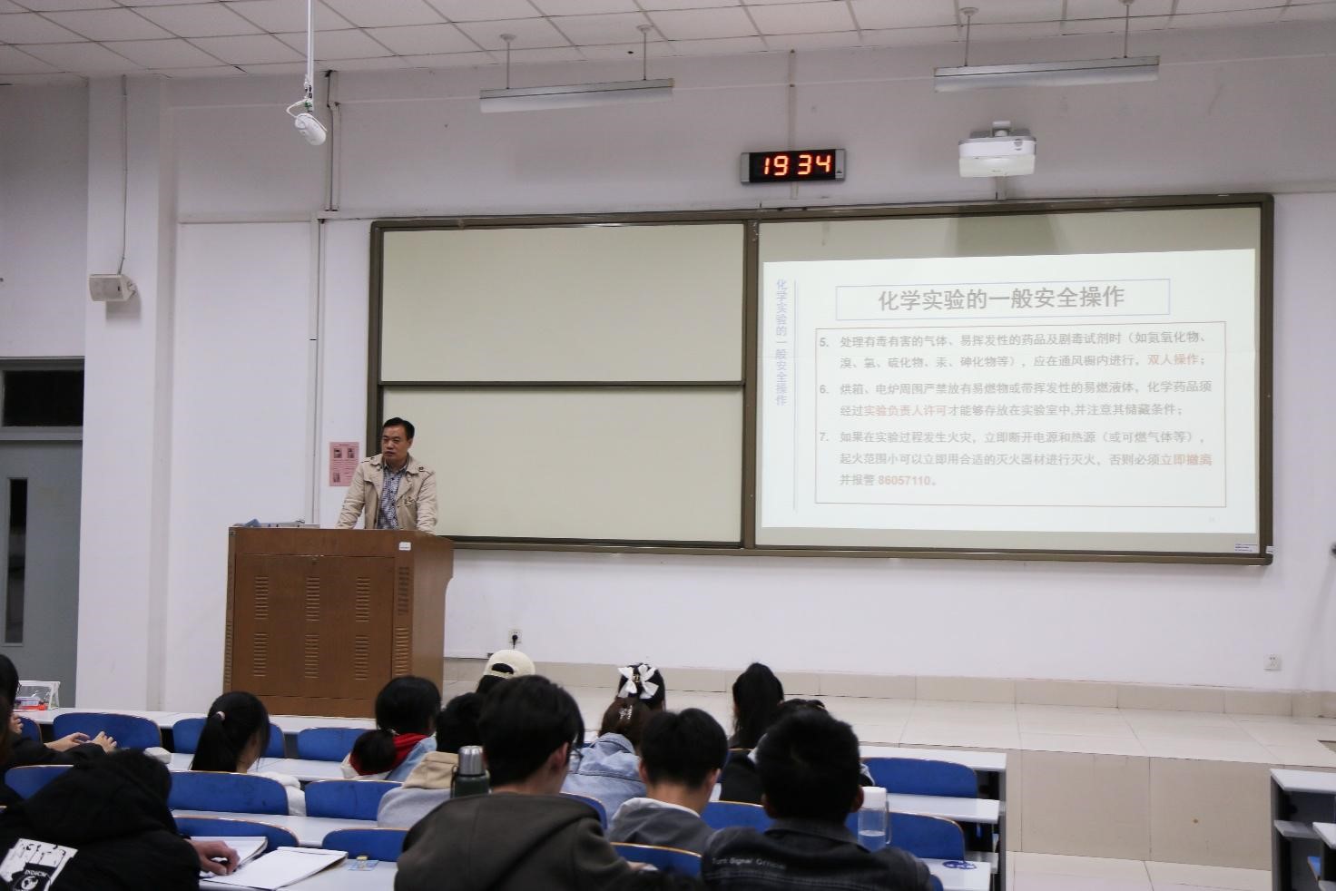 为进一步加强新生的实验室安全意识,有效防范实验室安全事故,提高实验室人员安全意识和处理突发问题的能力,确保校园安全稳定,10月28日晚,BB贝博艾弗森举办以化学实验室安全为主题的安全教育讲座,公司实验中心崔科老师担任主讲,全体2021级新生到场聆听。